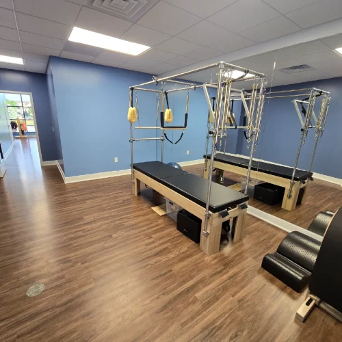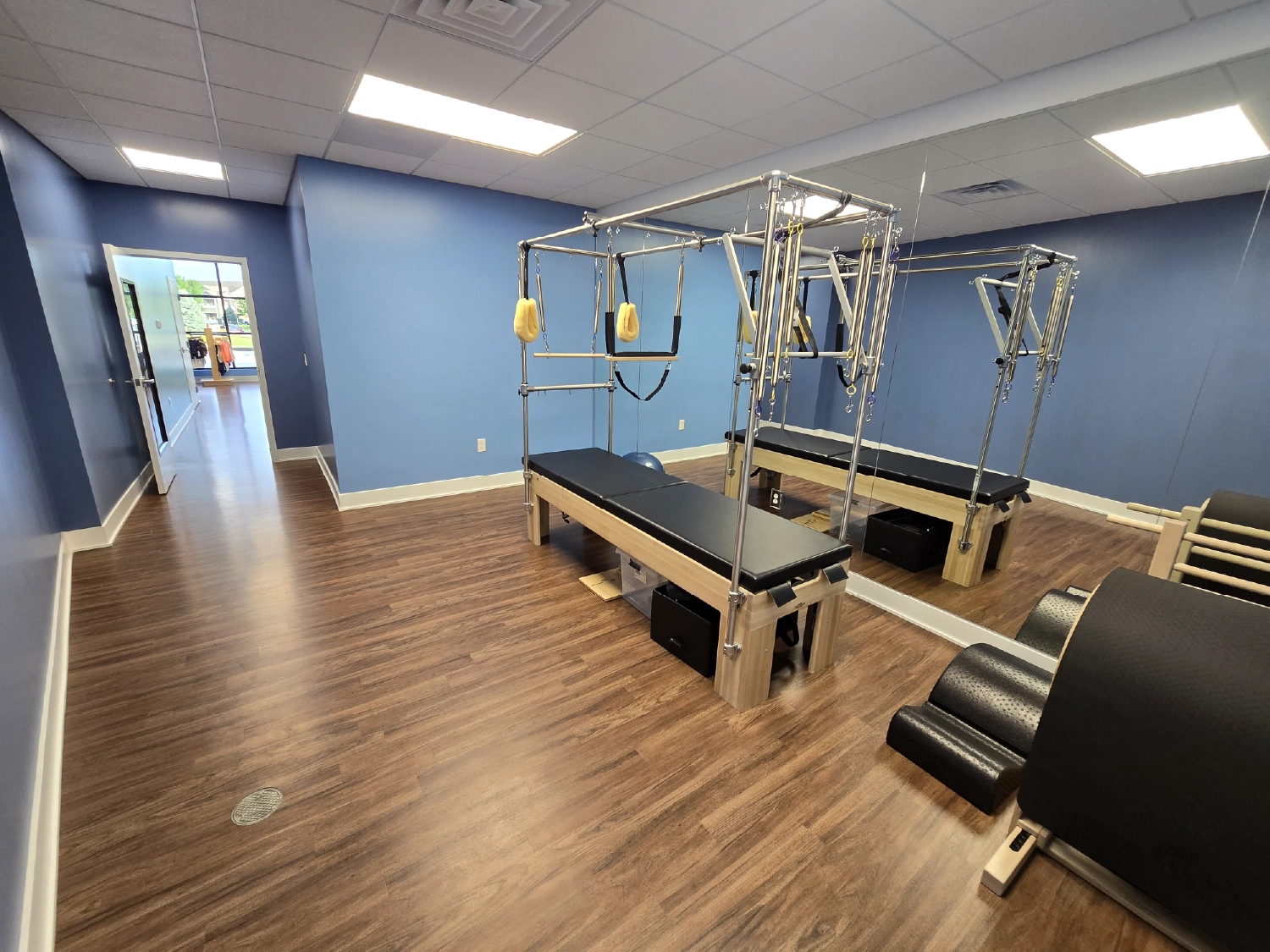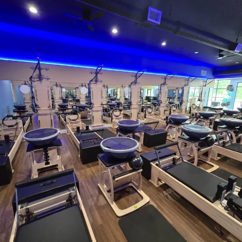 This is the second Club Pilates in Lincoln. It shares walls with a chiropractor and a light therapy studio, so the demising walls had to be soundproofed because the workouts contain music and an instructor speaking to the classes. This, alongside working within the franchise requirements, were a few of the challenges we worked through as a team