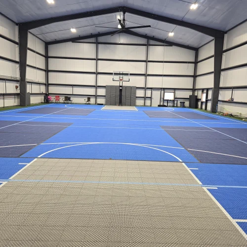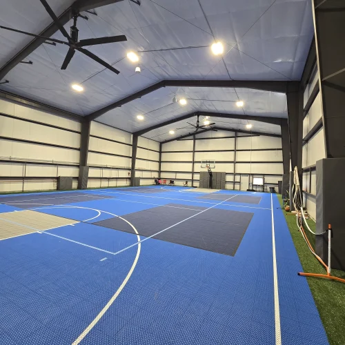 We delivered a one‑of‑a‑kind residential sports complex that blends luxury, engineering, and high‑performance design. This custom 60′ x 120′ indoor basketball facility provides the homeowners with a professional‑grade athletic space just steps from their residence.