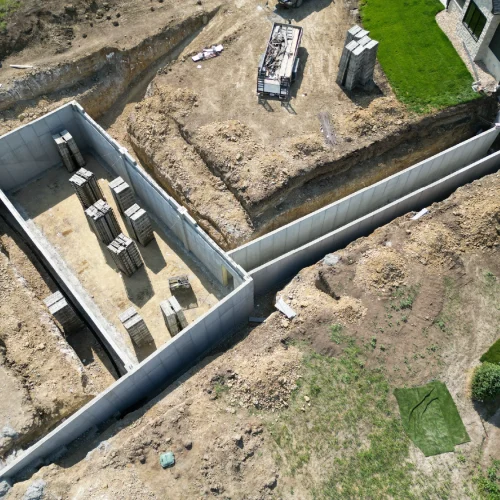 One of the most unique aspects of this project is the reinforced concrete underground tunnel connecting the home directly to a newly constructed basement beneath the sports building. This custom tunnel system allows the homeowners to access the gym privately and comfortably—no matter the season.