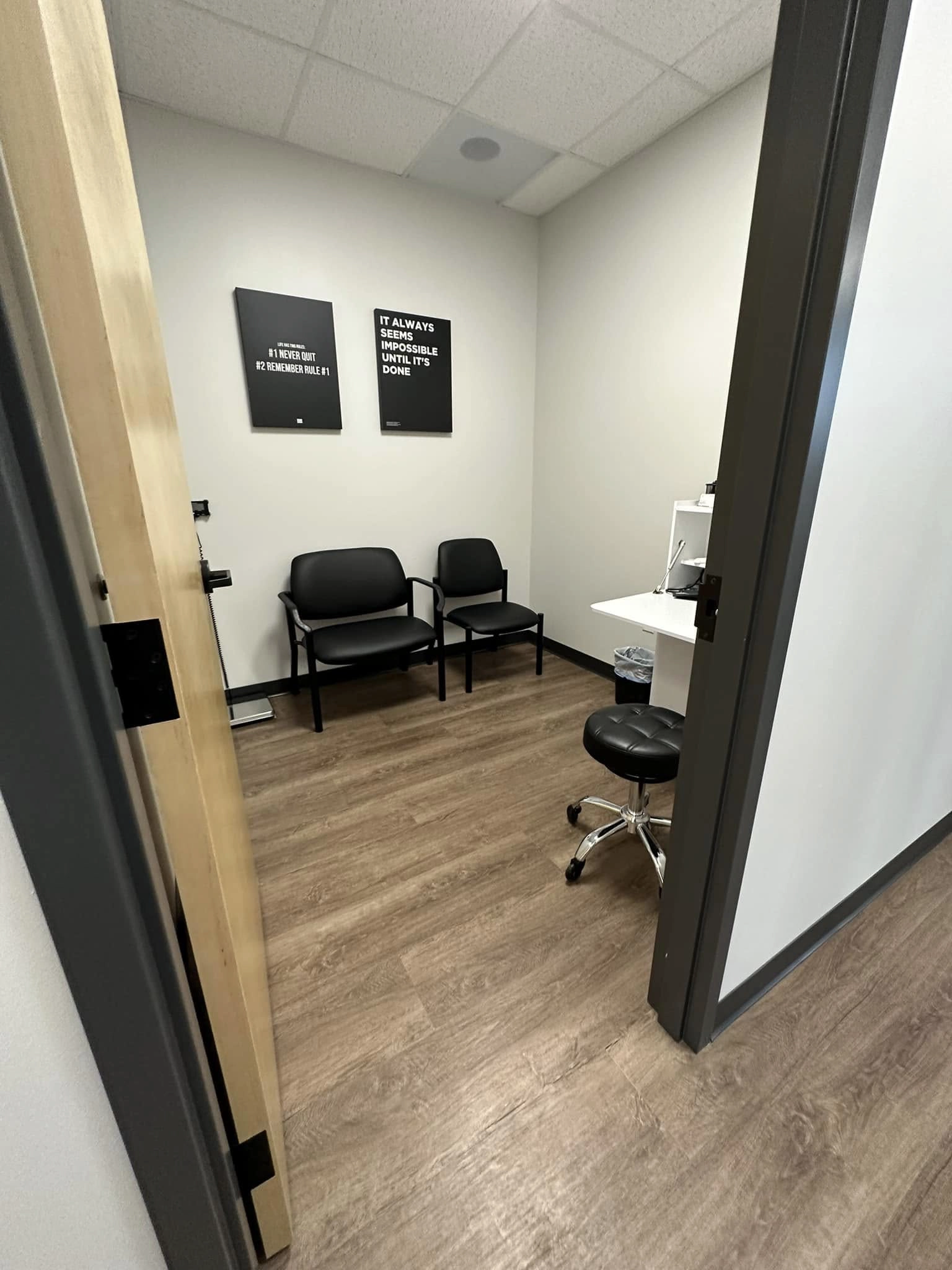 This project involved a complete tenant buildout for a modern weight loss clinic, designed to create a welcoming, professional, and calming environment for clients. The interior was thoughtfully planned to balance clinical functionality with a warm, hospitality-driven aesthetic.