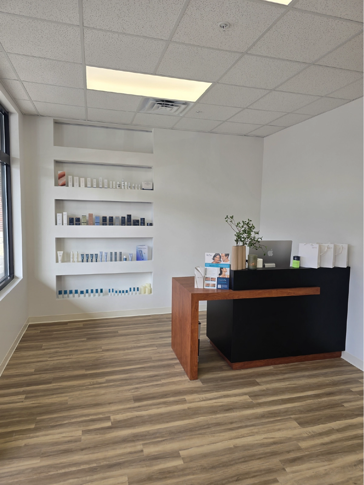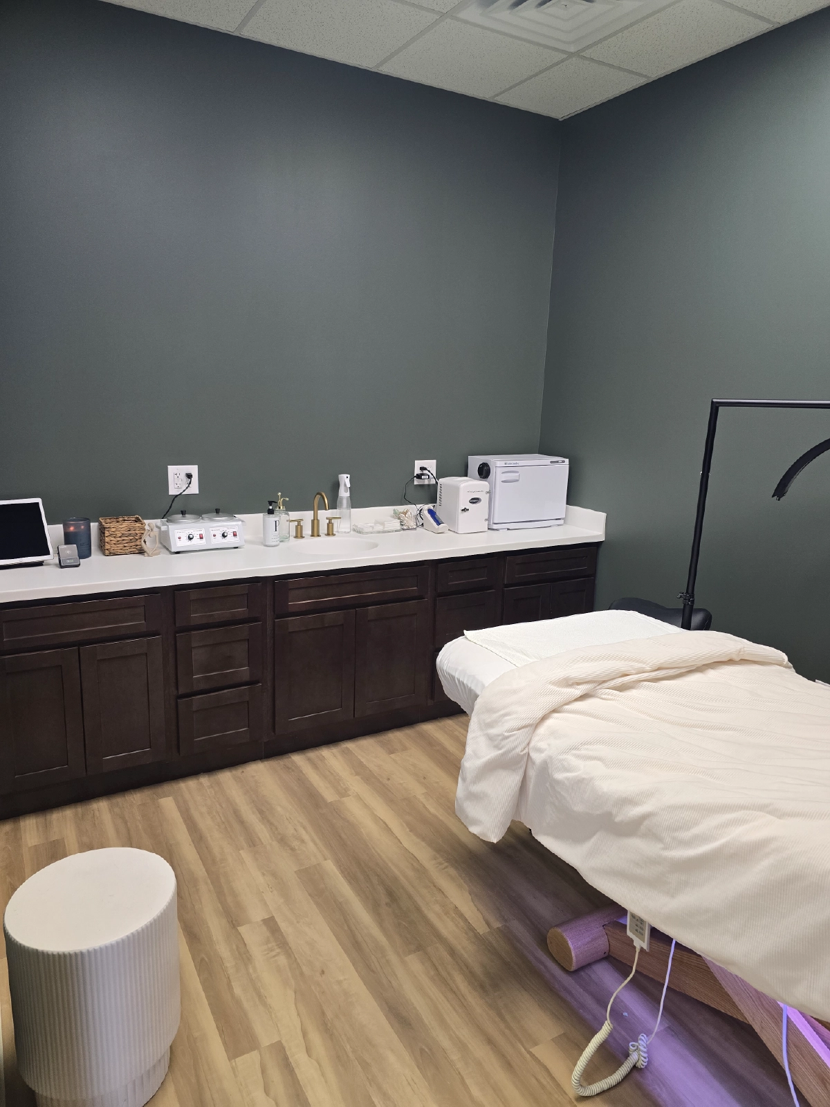 Pure Beauty’s renovated interior blends style and functionality, positioning the business for growth while reinforcing its commitment to professionalism and exceptional client care. From the inviting reception area to the thoughtfully planned treatment room, every element of the build‑out is designed to enhance the customer experience and support high‑quality beauty services.